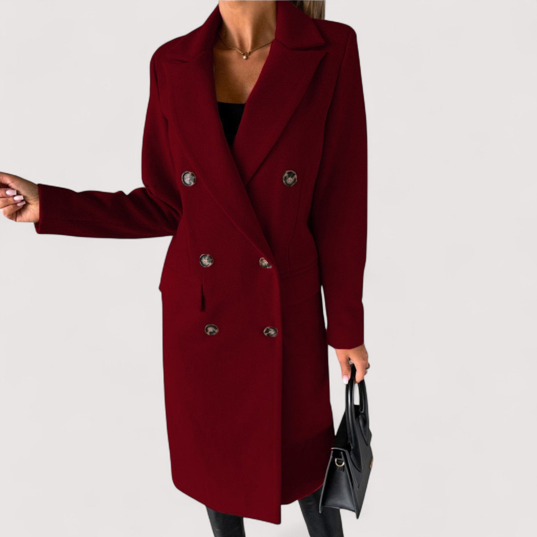 Ein langer Mantel, der Stil und Vielseitigkeit perfekt vereint. Ideal für professionelle Looks oder entspannte Alltagsoutfits.