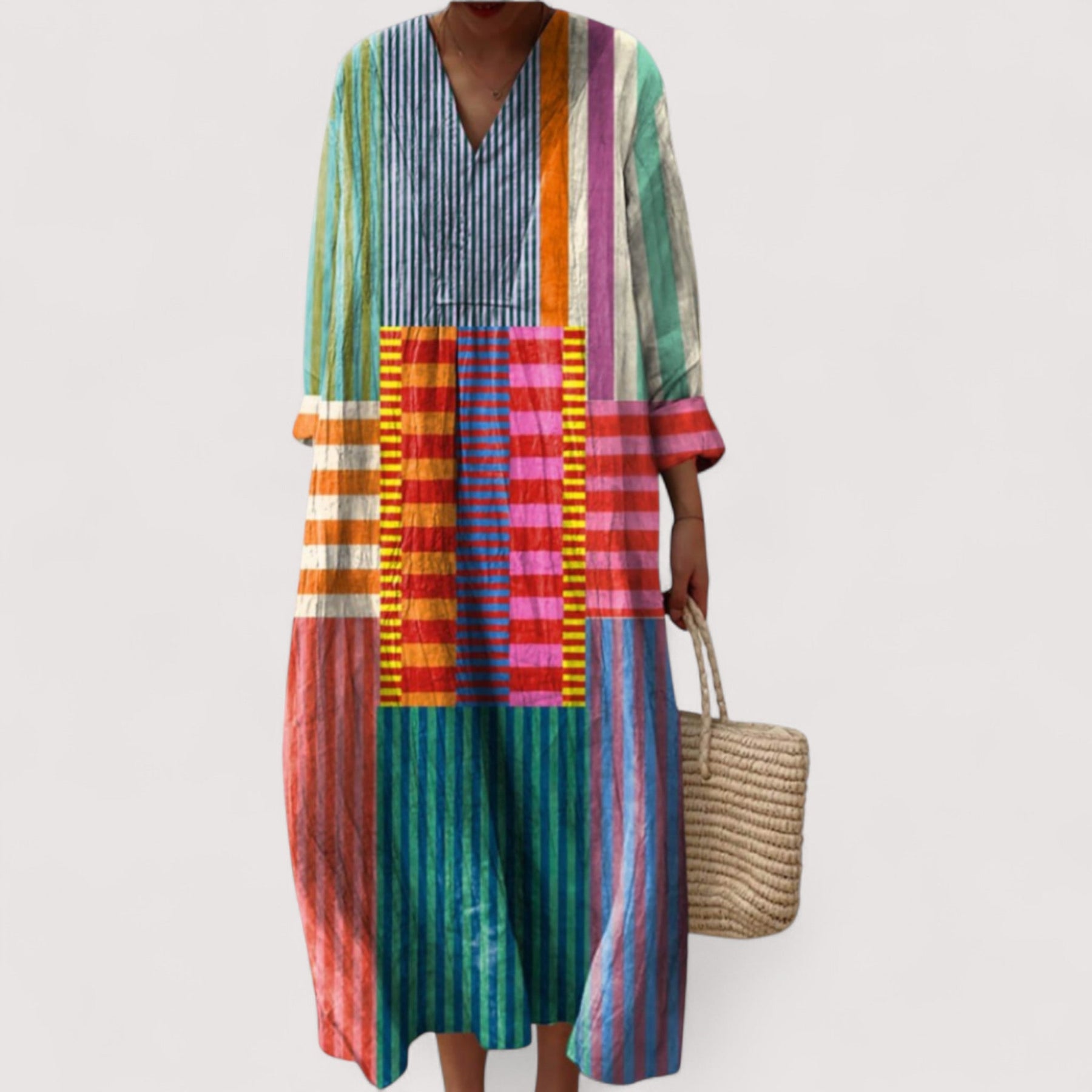 Entdecken Sie die perfekte Mischung aus Kunst und Eleganz mit diesem Kleid. Sein modernes Design und die fliessende Passform schmeicheln jeder Figur und garantieren Komfort und Stil.