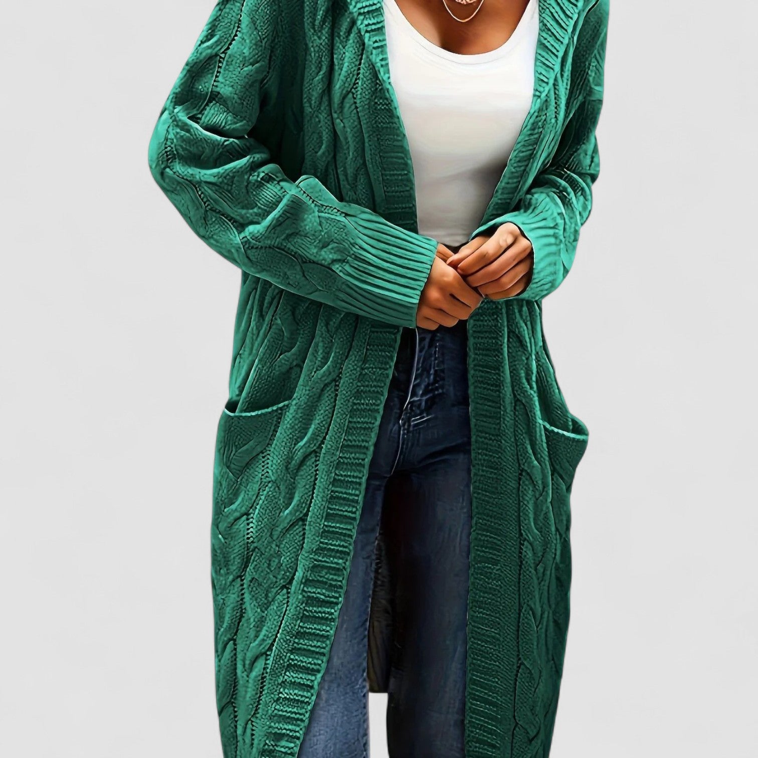 Stilhaus Bern | Lange Strickjacke mit Kapuze und lässiger Eleganz