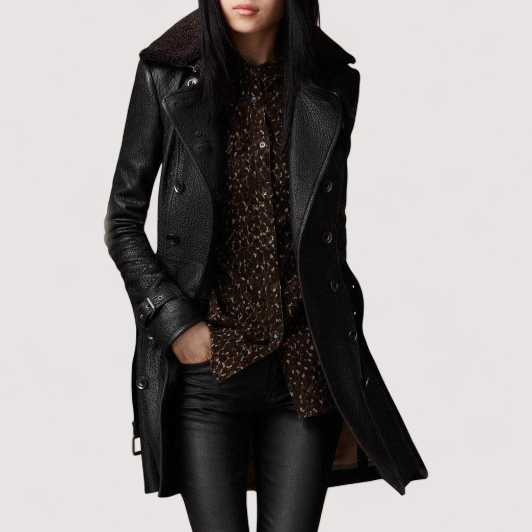 Valentina | Eleganter Ledermantel in 3/4-Länge