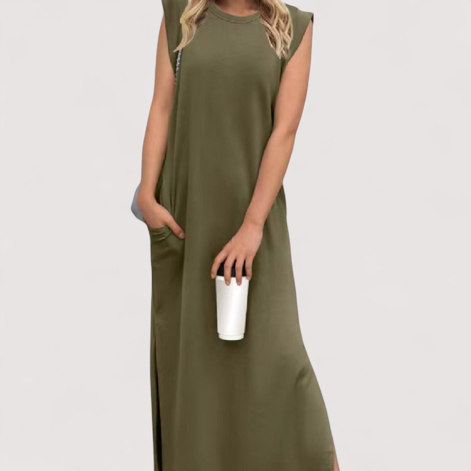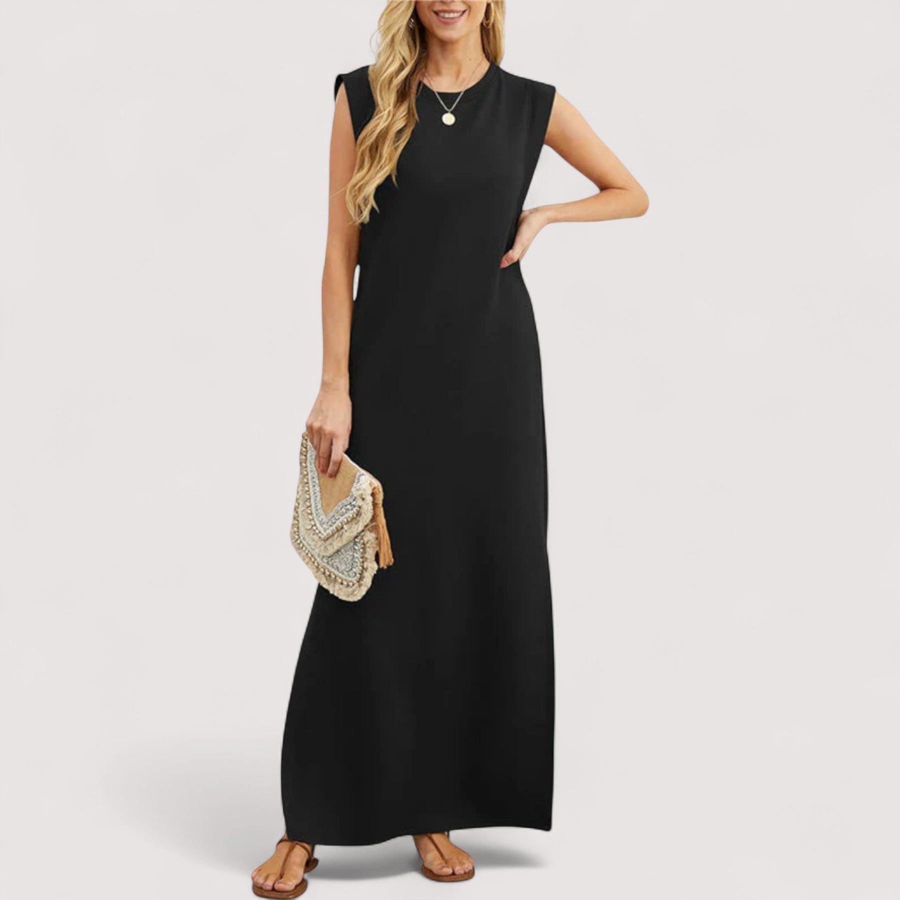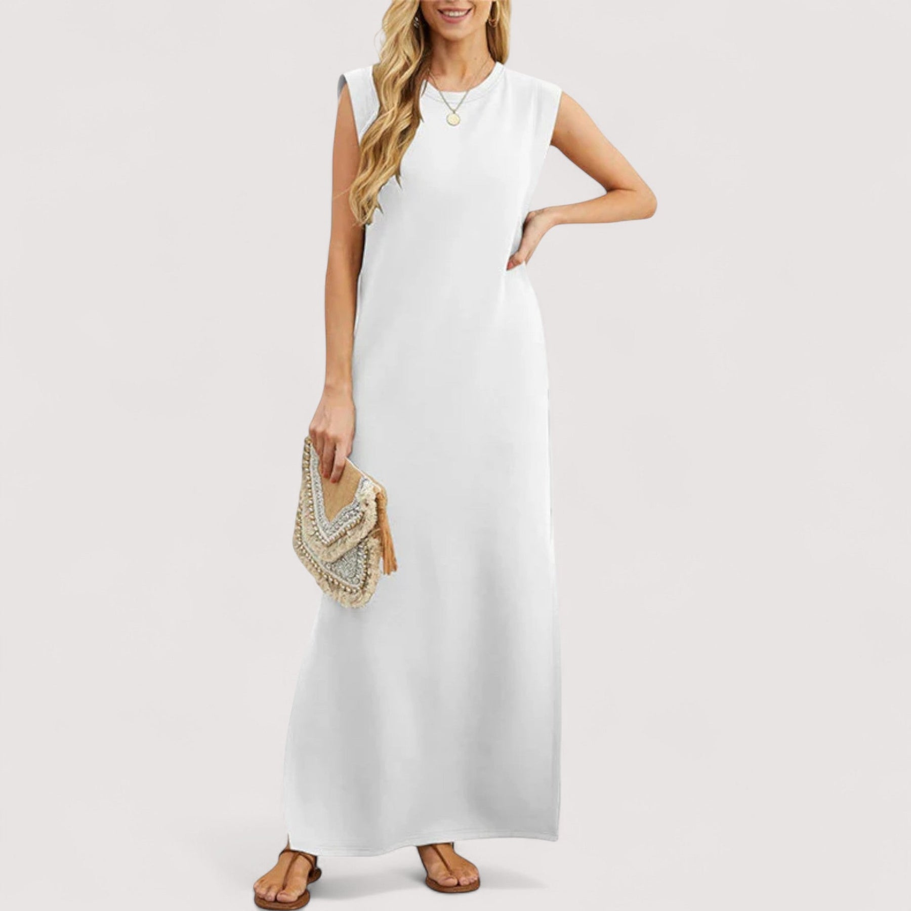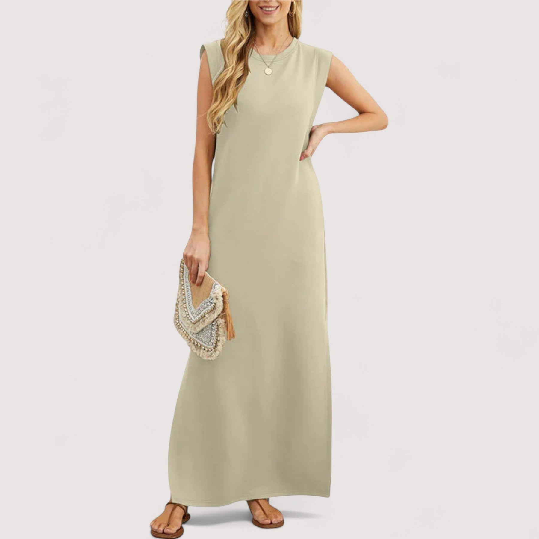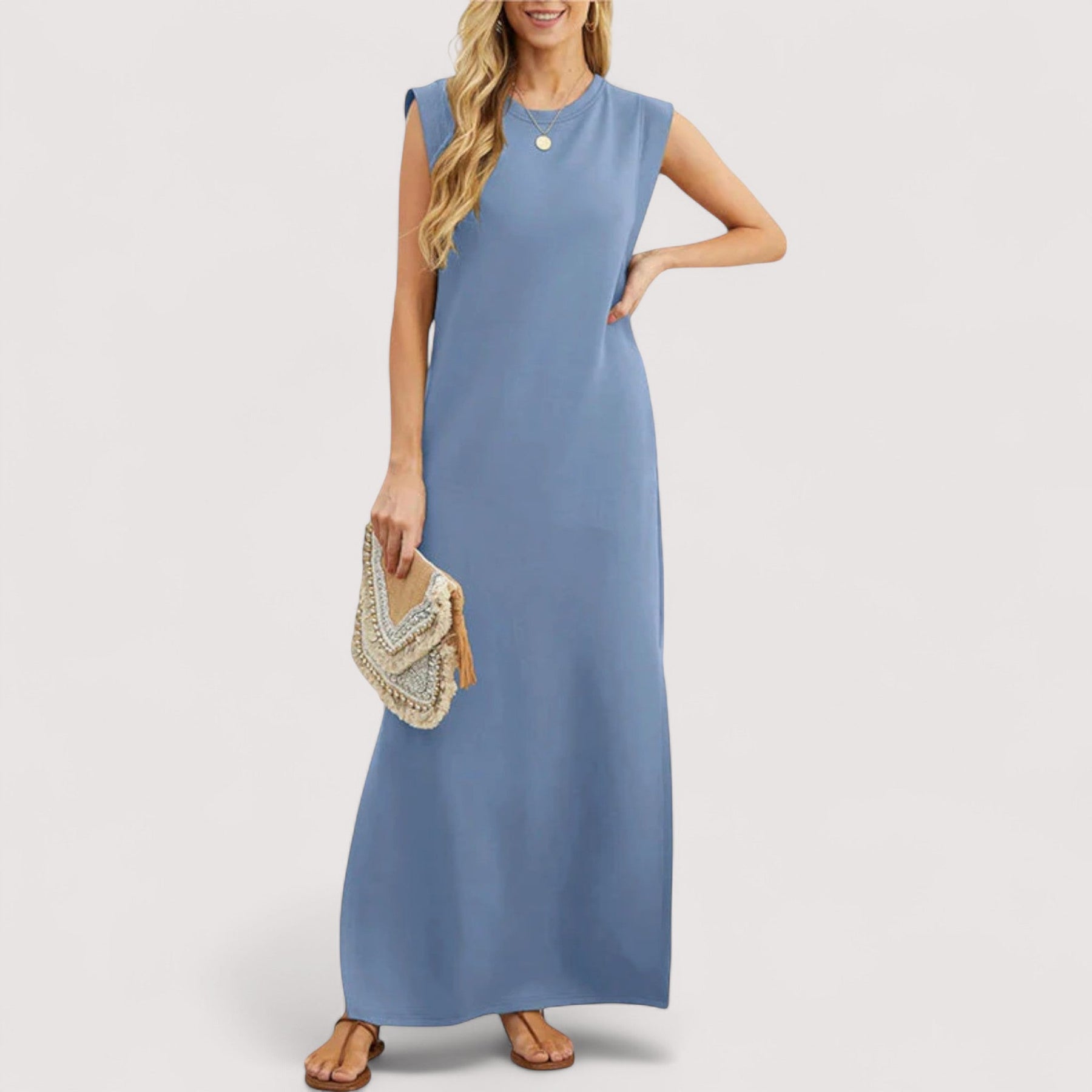 Dieses lange Sommerkleid vereint Eleganz und Komfort und ist somit ideal für entspannte Anlässe sowie sommerliche Events.