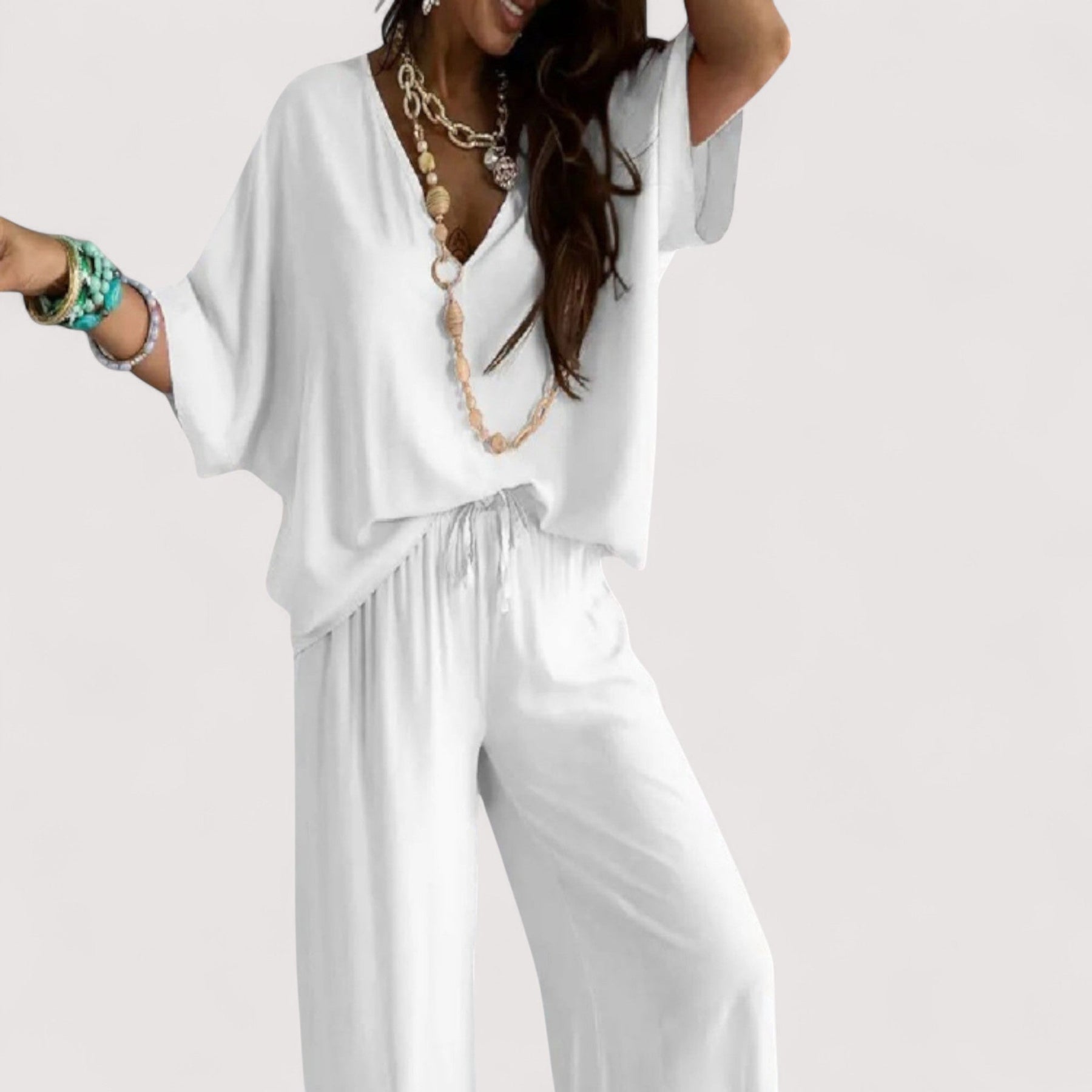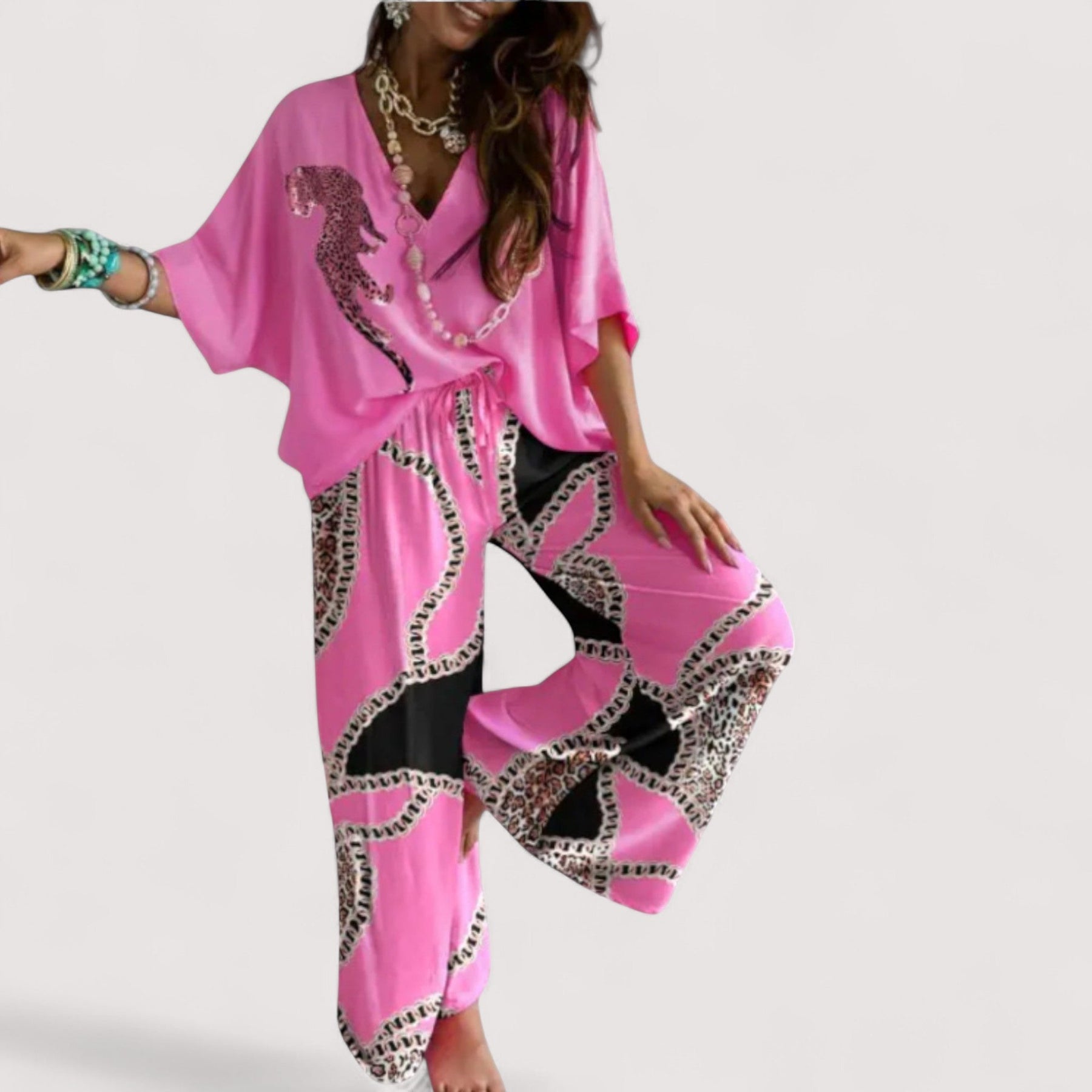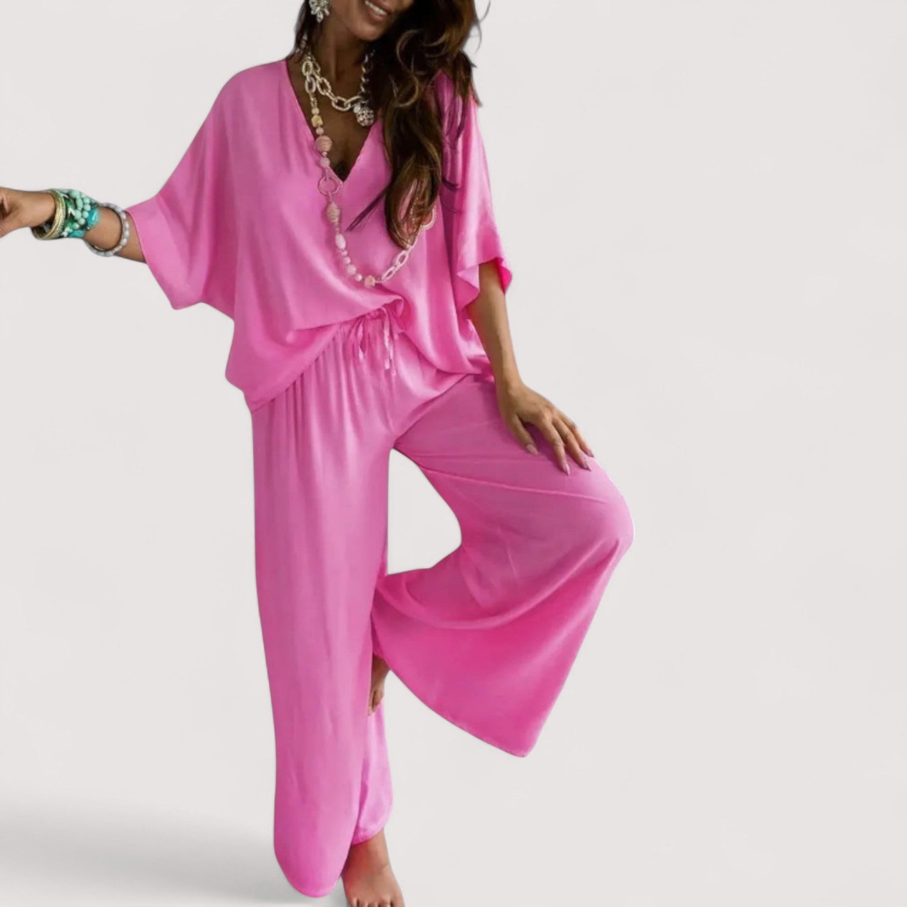 Dieses lässige Zweiteiler-Set wurde für Frauen entworfen, die mutigen Stil mit einem Hauch von Femininität schätzen – perfekt für jeden Anlass, der Komfort und einen modernen Touch erfordert.