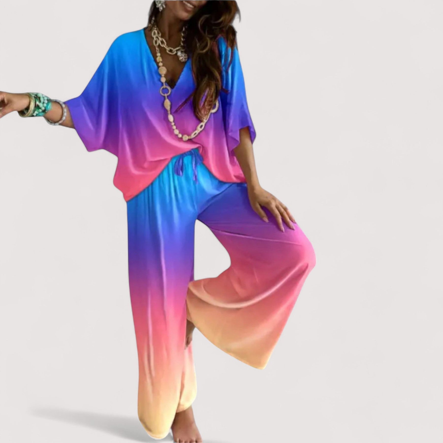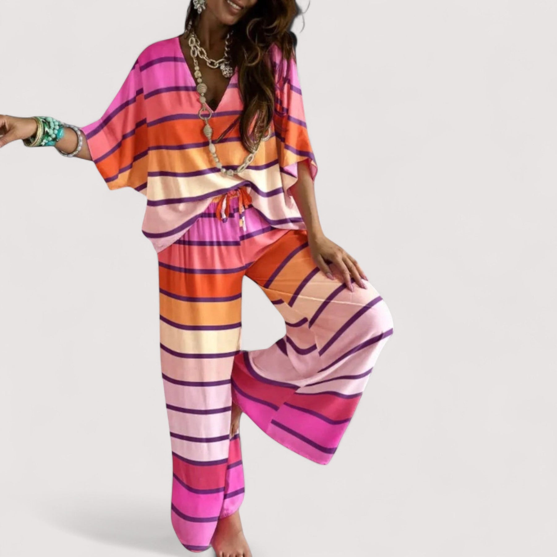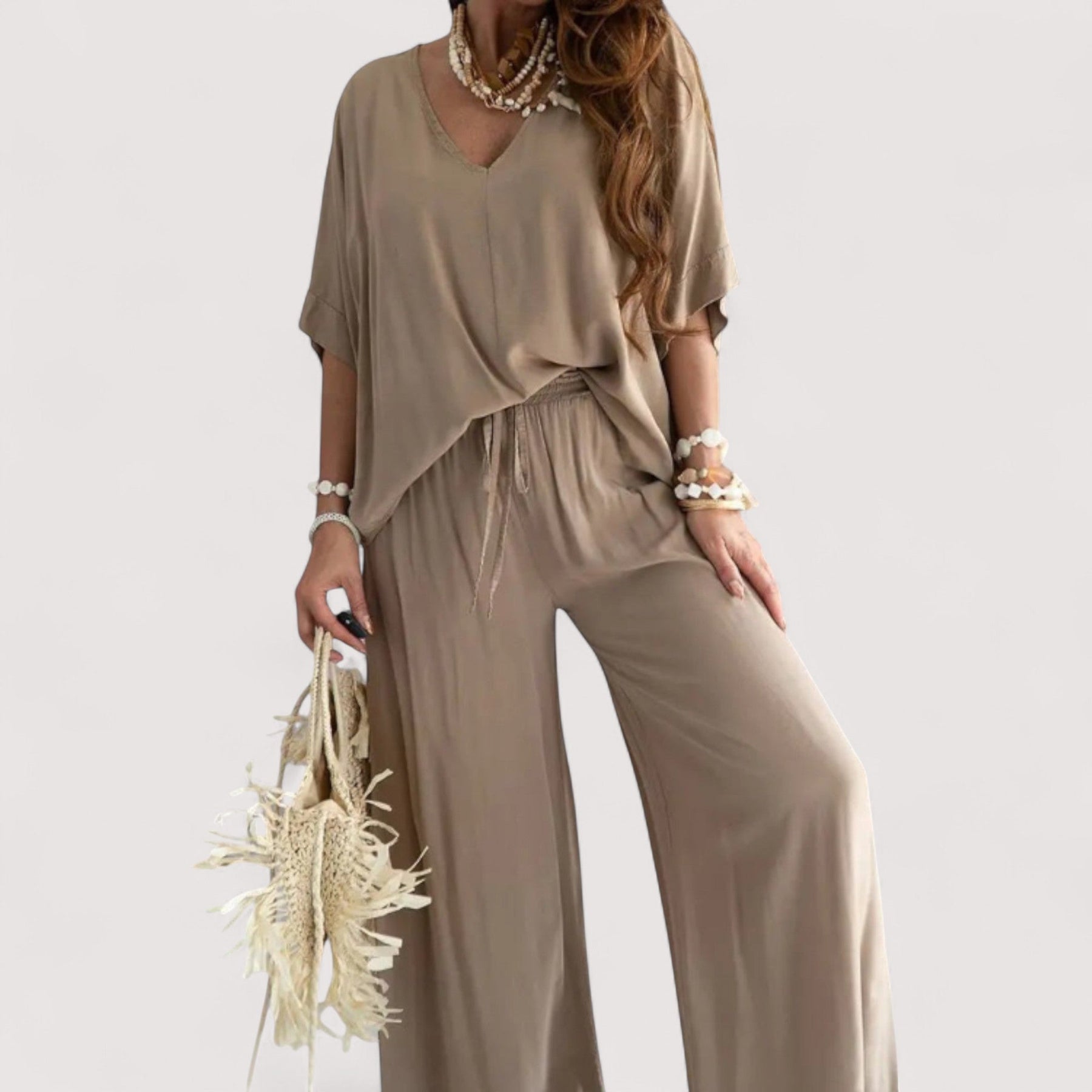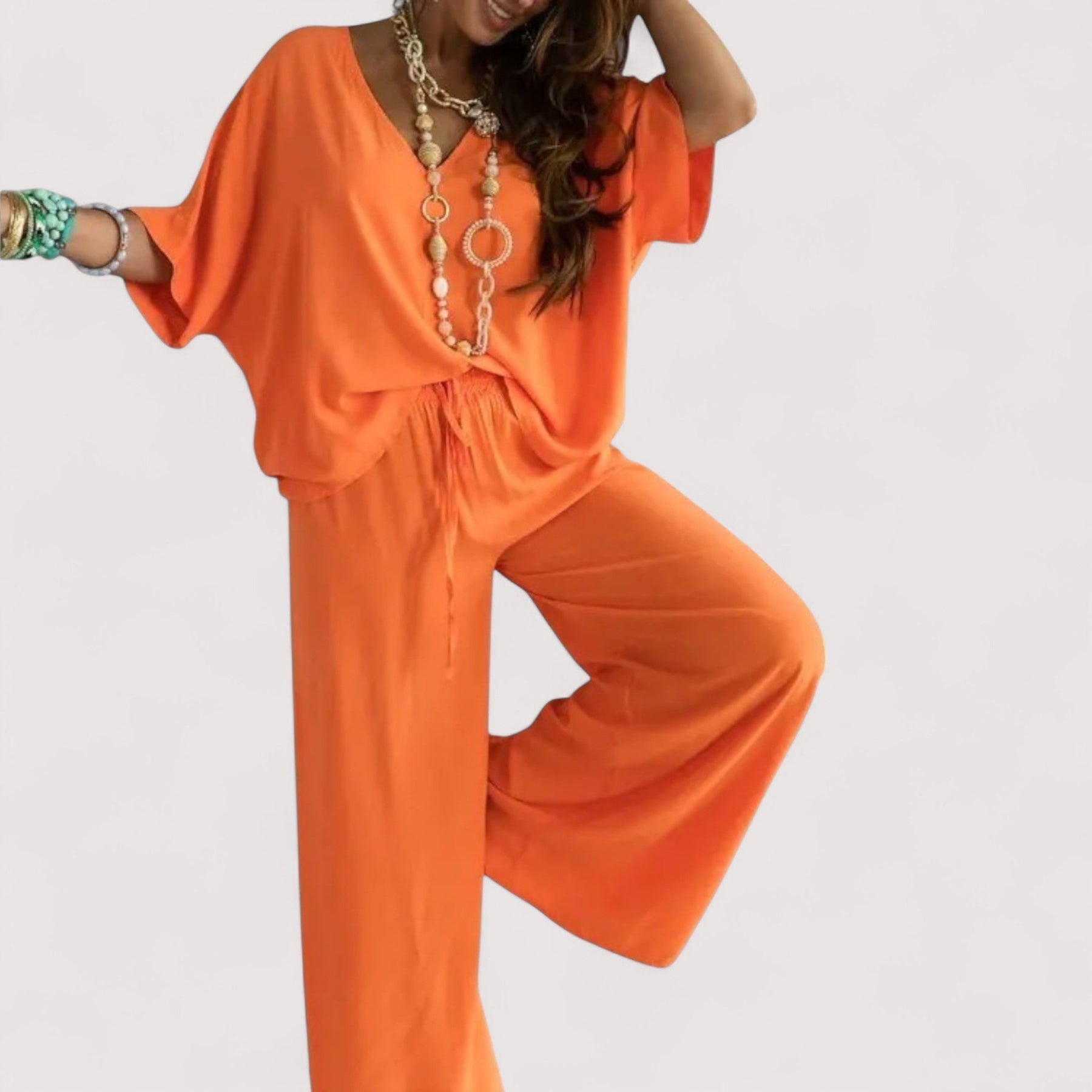 Dieses lässige Zweiteiler-Set wurde für Frauen entworfen, die mutigen Stil mit einem Hauch von Femininität schätzen – perfekt für jeden Anlass, der Komfort und einen modernen Touch erfordert.