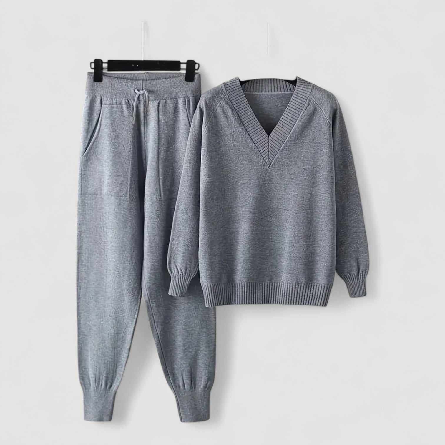 Dieses weiche Lounge-Set vereint Komfort und Stil auf harmonische Weise. Der tiefe V-Ausschnitt und die fließende Passform schaffen eine moderne Silhouette, die sich sowohl zu Hause als auch unterwegs mühelos tragen lässt.